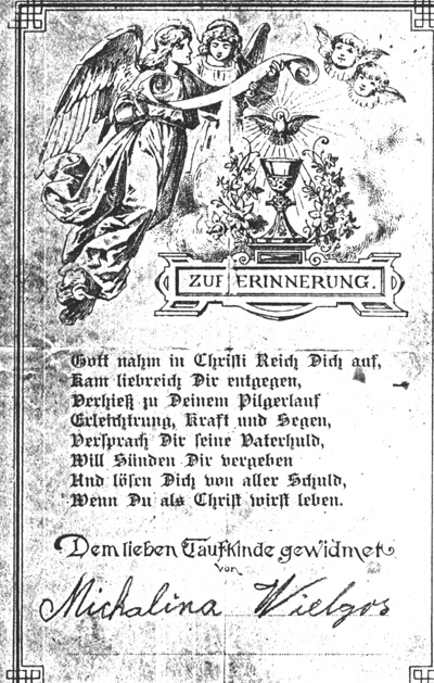 Possibly given to Michael Wielgos from his godmother at time of his Baptism.